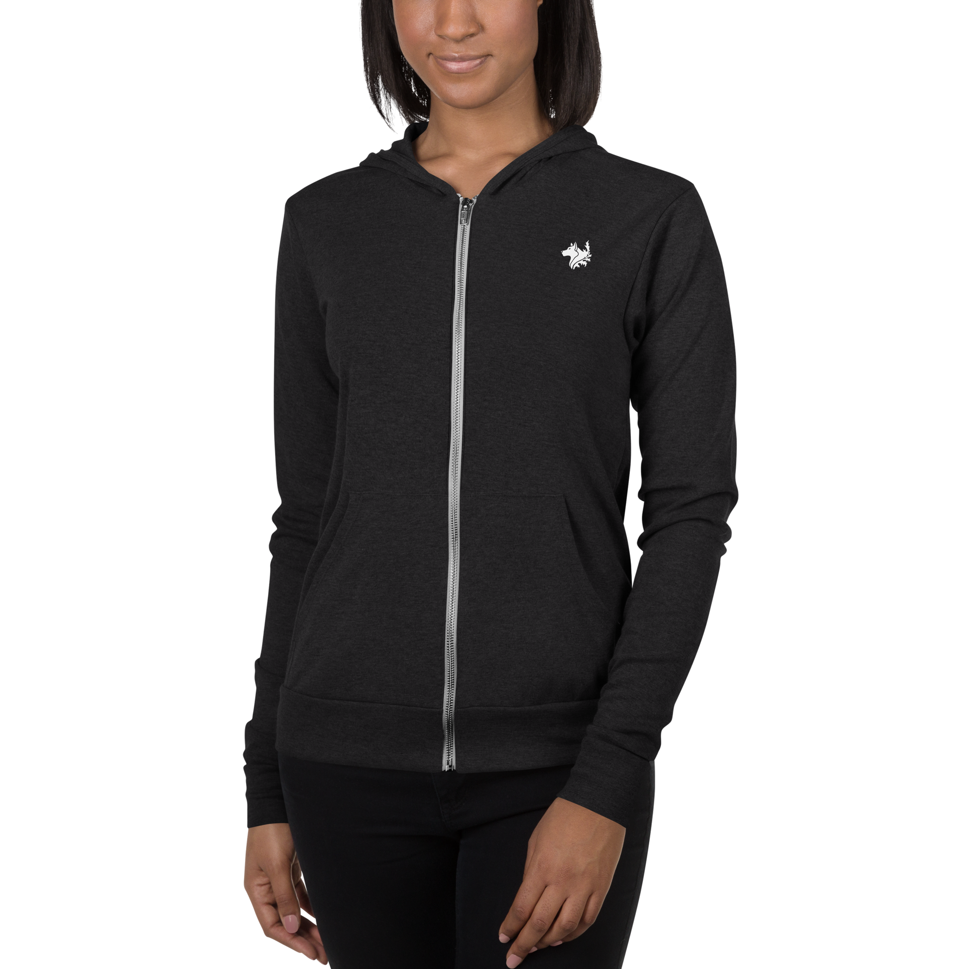 For when you get chilly on a summer evening by the lake, or simply need something comfy to throw on, this lightweight women's zip hoodie with a modern fit, hood, front zip, and a kangaroo pocket is the way to go.